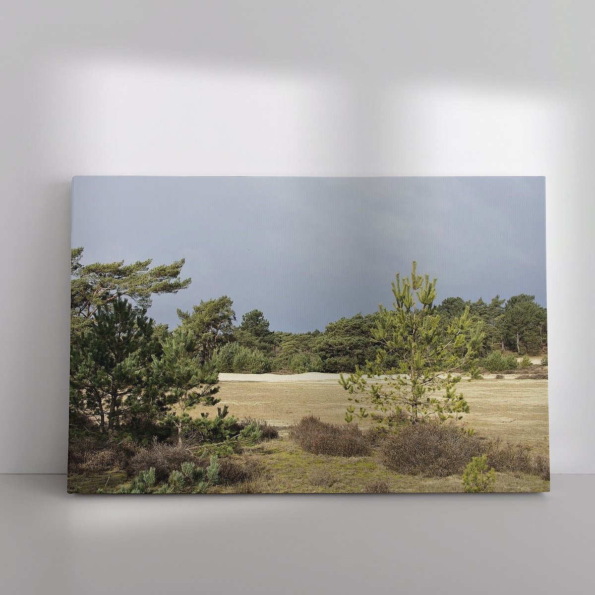 De eerste foto dat ik in mijn shop bij Werk aan de Muur is de foto Dennen op de Hulshorsterzand(link). Je ziet op deze foto grove dennen dat op de Hulshorsterzand staan, je blik word geleid naar een kleine dennetje met een afwijkende groene kleur. Je kan deze foto via deze link bestellen.