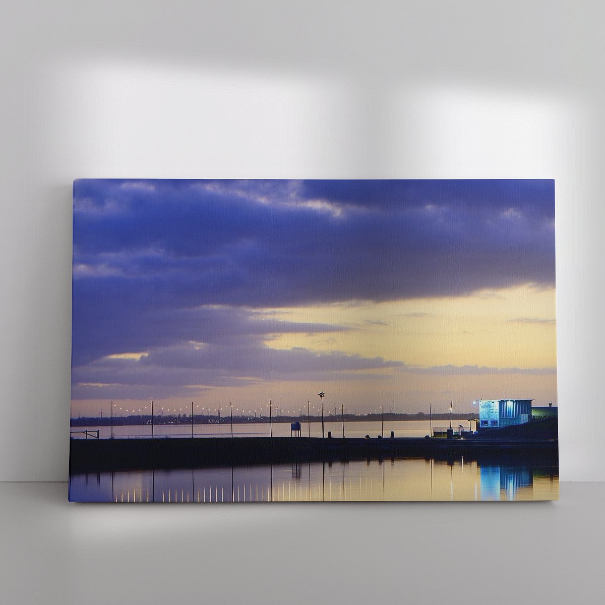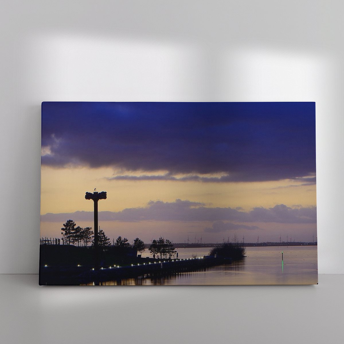 De 2 mooiste foto’s heb ik ook in mijn shop bij Werk aan de Muur(link) te koop gezet om een muur te sieren. Het gaat om de foto Een haven doorgang in de avond(link) en de foto Een dam naar een eiland in de avond(link).